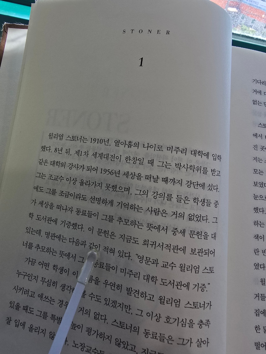 윌리엄 스토너는 1891년 미주리 시골 농가에서 태어나, 농업을 전공하기 위해 미주리 대학에 입학합니다.