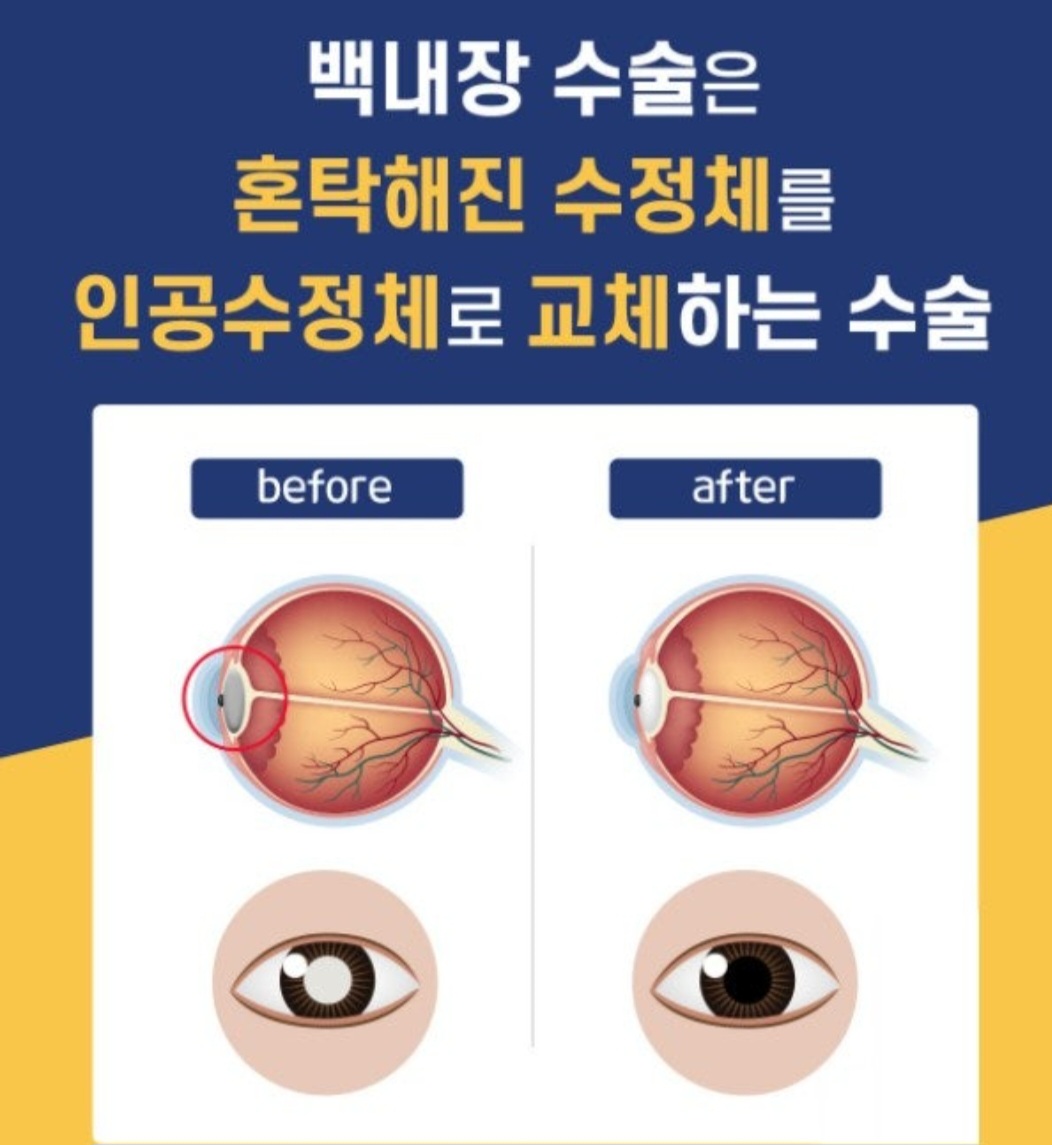 👉 수정체 제거만 하는 경우 병원마다 다르지만, 인공수정체 삽입 수술보다 비용이 적게 듭니다.