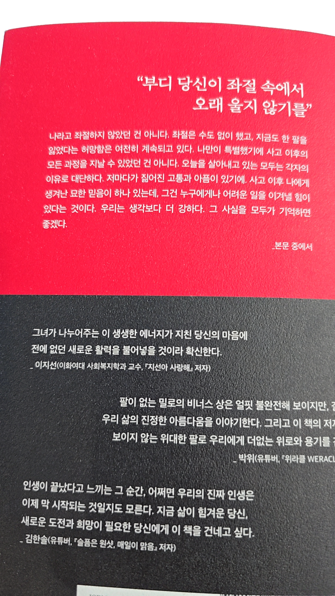 누구나 적용할 수 있는 ‘삶의 태도서’에 가깝습니다. 개인적인 아픔을 넘어 실행, 감사, 용기라는 보편적인 주제를 이야기하기 때문입니다.